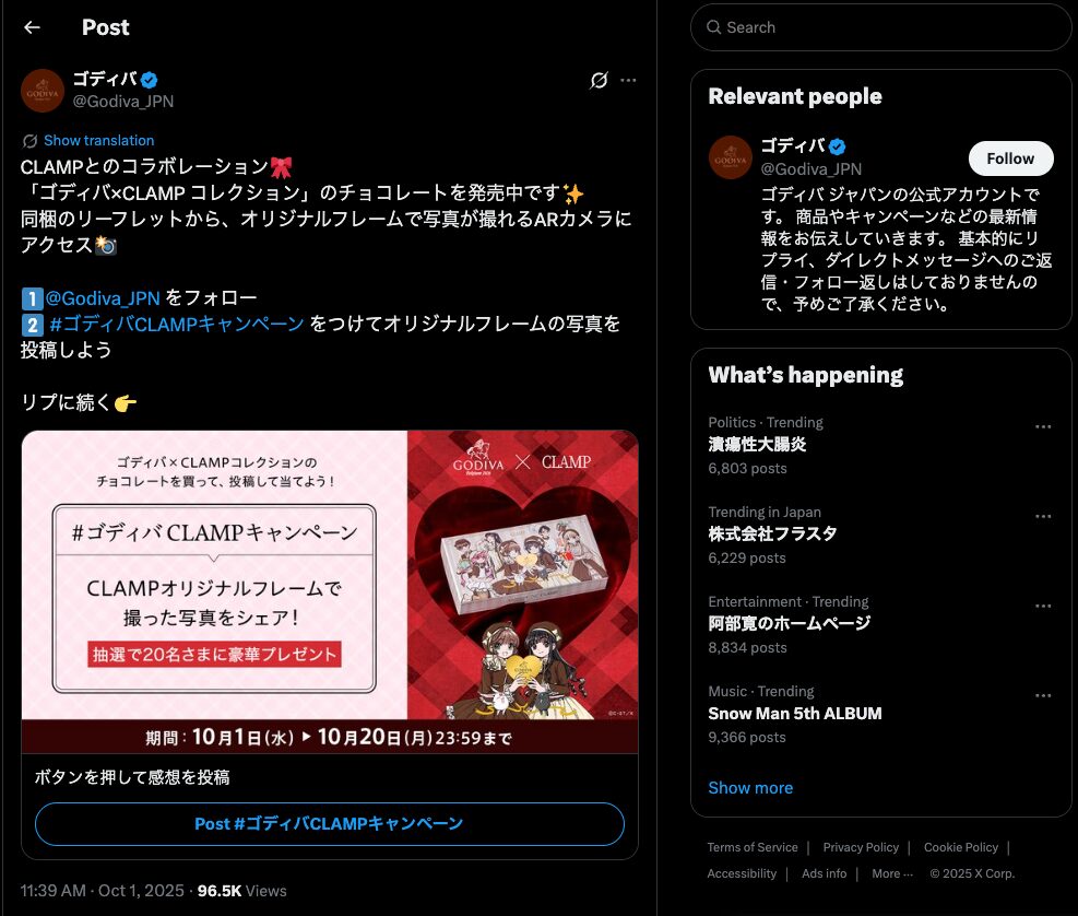 つまり、GODIVAは手間をかけることで、CLAMPとそのファンへの敬意まで示しているのです。この姿勢が、SNS(X)投稿321万ビュー(2025年11月時点)という驚異的な反響を生んだ理由のひとつかもしれません。