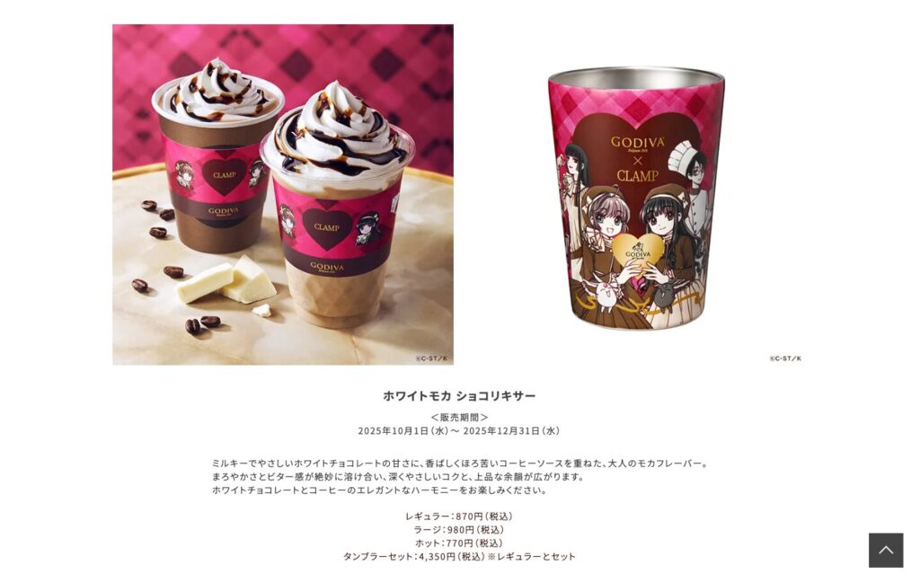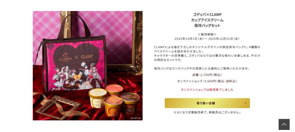 参考:CLAMPとコラボレーションしたコレクションが登場!保冷バッグやタンブラーのセットも発売「ゴディバ×CLAMP コレクション」など4商品販売 - PR Times
