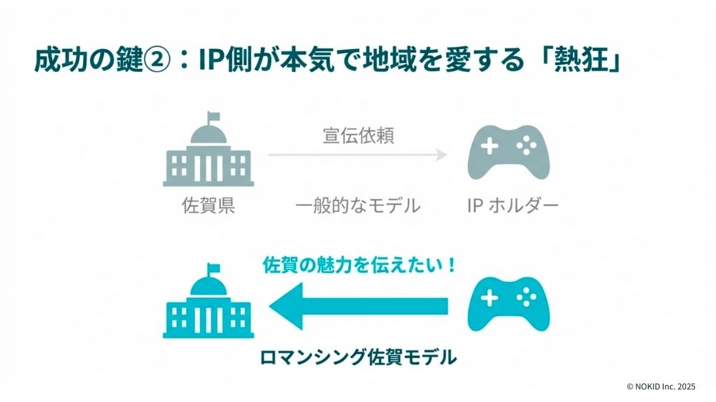 「ロマンシング佐賀」の事例は、予算や知名度に頼らずとも、長期的な視点と段階的な取り組みによってIPコラボが持続可能な地域活性化につながることを証明しています。