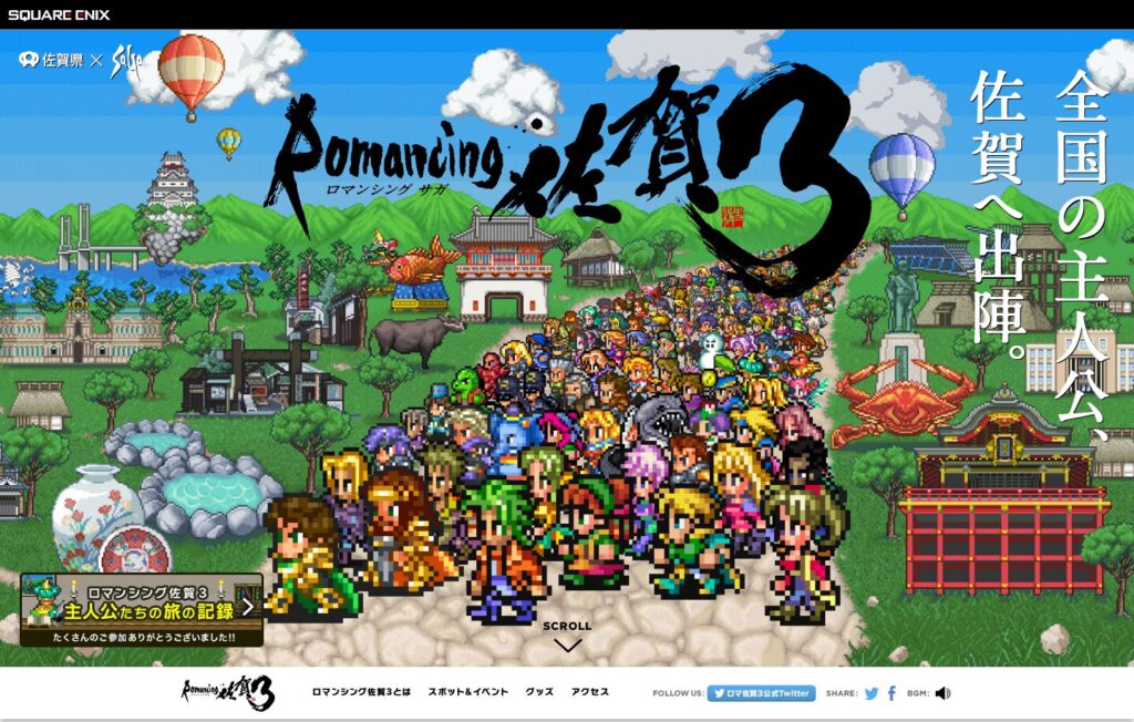 ロマンシング佐賀の最大の特徴は、一時的なキャンペーンではなく、複数年にわたる継続的なコラボレーションだったことです。このプロジェクトは、2014年に佐賀県とスクウェア・エニックスが開始した大規模なコラボレーションです。