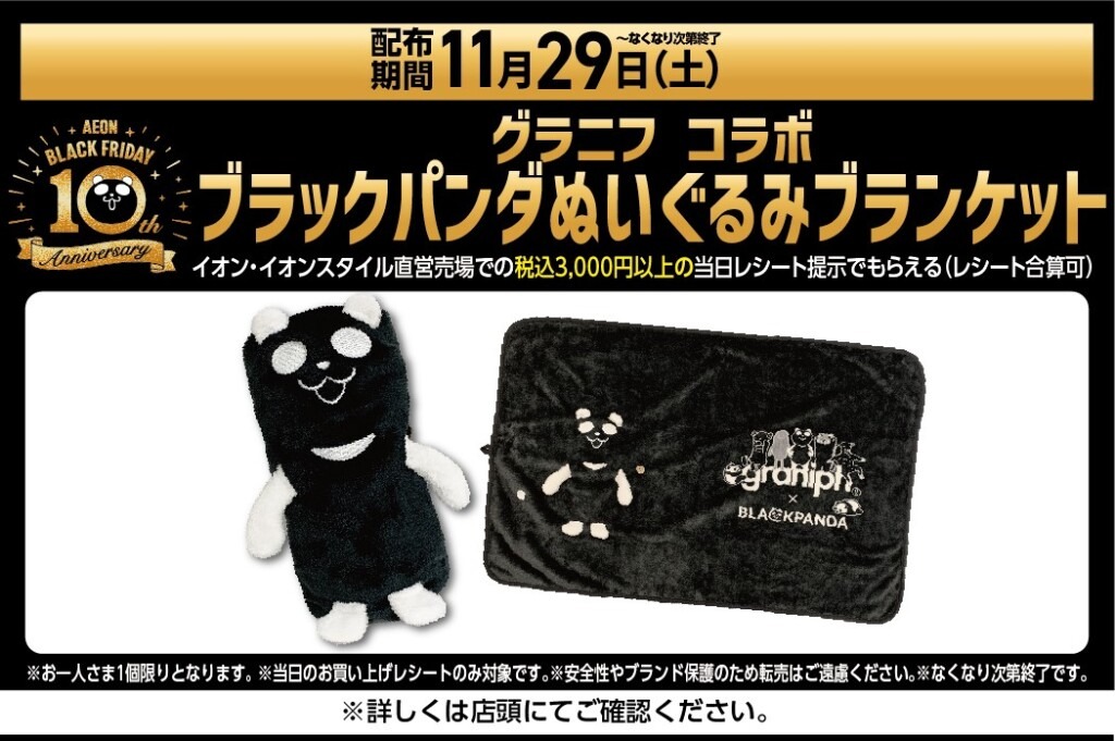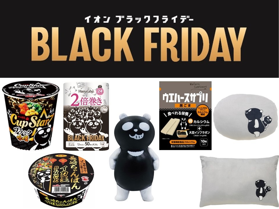 参考:【ブラックフライデー】オリジナルキャラクター「ブラックパンダ」デザインのカップ麺やクッションなど、イオン限定商品約80品目販売 - PR Times