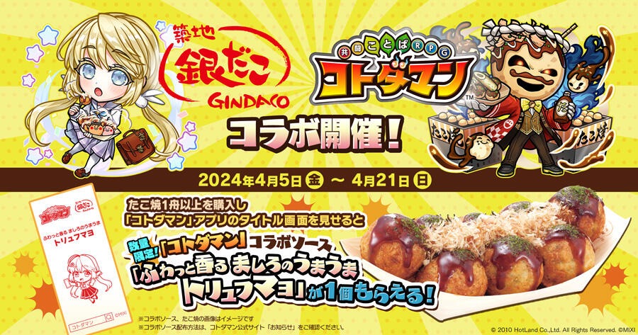 参考:「築地銀だこ」×「コトダマン」店舗コラボ開催! - 共闘ことばRPG コトダマン公式サイト