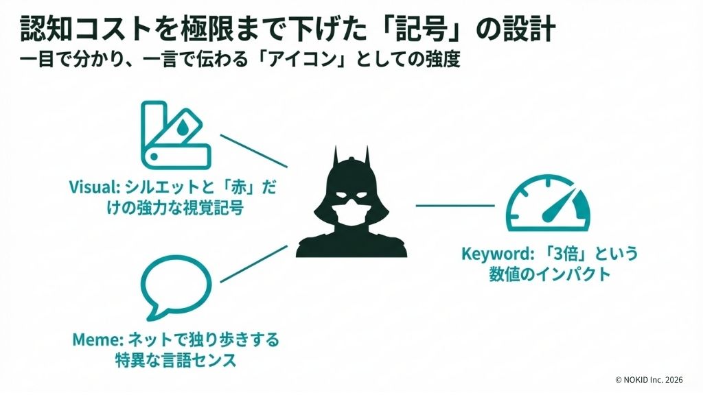 マーケティングにおいて、こうした認知コストの低さは強烈な武器になります。一目で分かる、一言で分かるキャラクターであるため、パロディやコラボレーションが容易であり、常に露出が途絶えません。