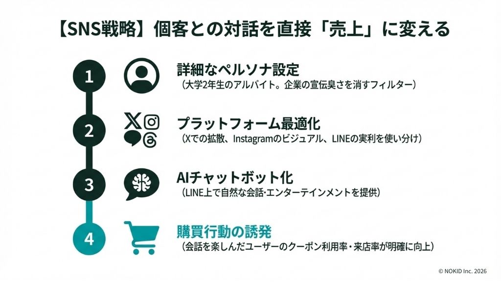 これは単なるお遊びではありません。ローソンの分析によると、AIあきこちゃんとの会話を楽しんだユーザーは、その後に配布されるクーポンの利用率が高く、実際の来店や購買行動に結びついていることが判明しています。