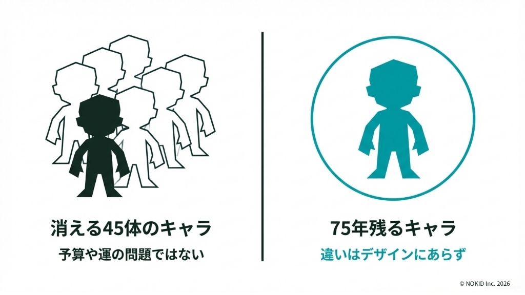 消えたキャラクターと、生き残ったキャラクター。この差は、デザインのクオリティでも、予算の大小でも、運の良し悪しでもありませんでした。