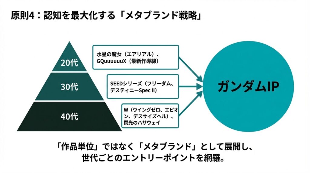 これは作品単位の切り出しではありません。ガンダムというメタブランド(個別作品を超えた包括的なブランド)としての切り出しです。
