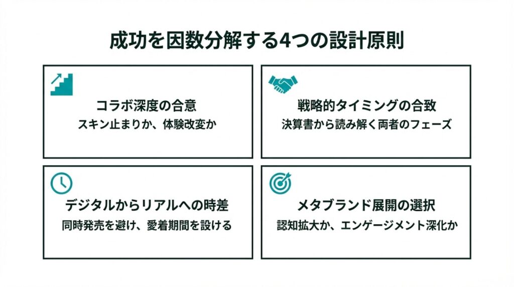 コラボの深度は、IPホルダーとプラットフォーム双方の戦略的タイミングが一致したときに最大化します。これが今回の事例から引き出せる最も実務的な発見です。