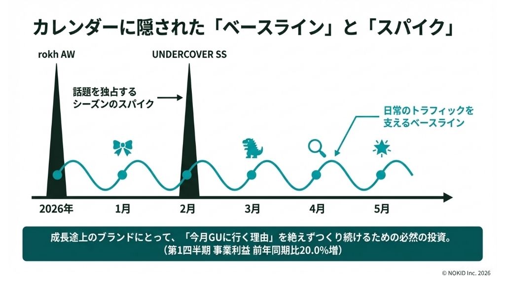 GUがこれほどの頻度でコラボを仕掛けるのは、低価格だけでは来店動機を維持できないからかもしれません。