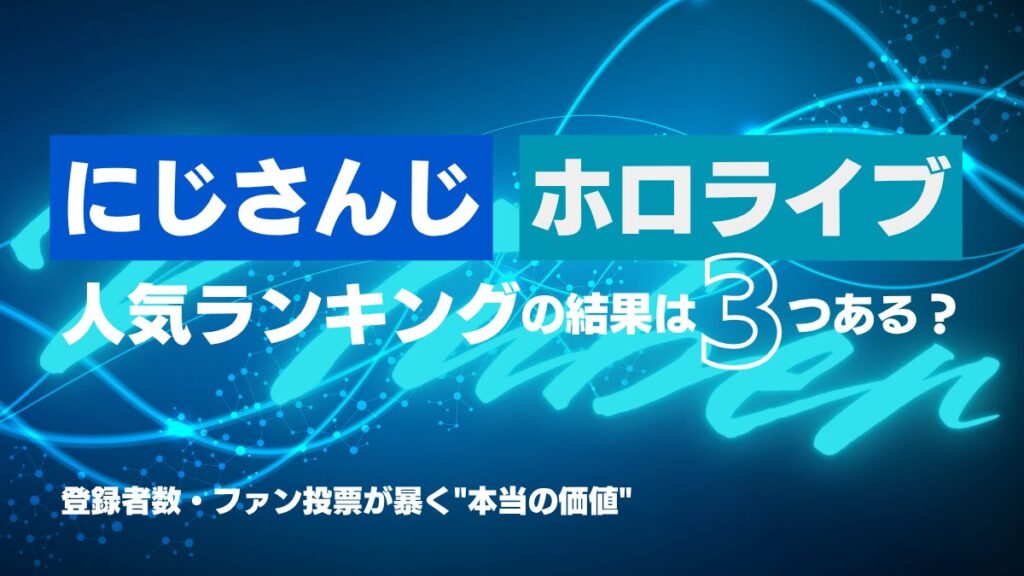 この質問に、一つの答えを返すことはできません。正確に言えば、答えは3つあります。そして、その3つがほとんど一致しないという事実こそが、VTuberの人気を理解するうえで最も重要な手がかりになります。