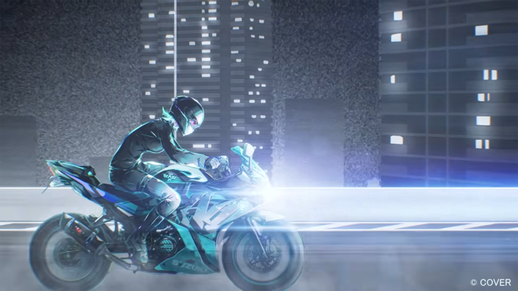 輪堂千速本人がGSX250Rに乗り、「hololive SUPER EXPO 2026」の会場である幕張メッセへとライディングする映像構成としました。